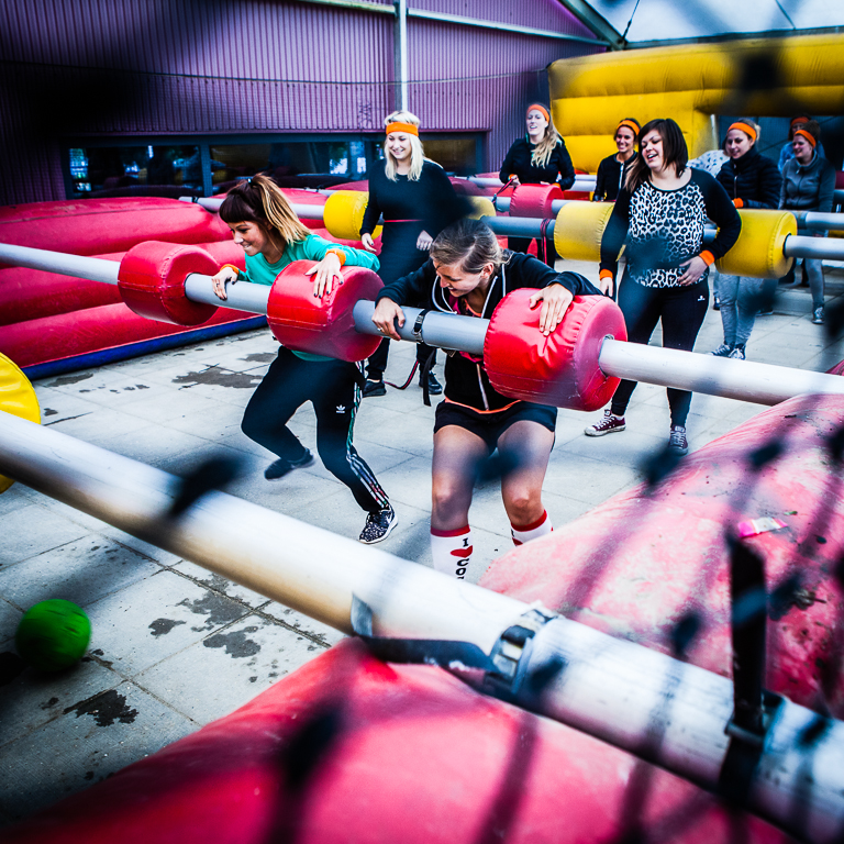 The game requires precision as well as speed. But beware, this game also requires agility! For 1,5 hour you play football, just with your feet and try to get the ball into one of the 9 holes.